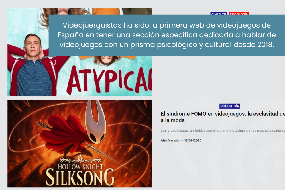 Además, son el alma de la web. Videojuerguistas ha sido la primera web de videojuegos de España en tener una sección específica dedicada a hablar de videojuegos con un prisma psicológico y cultural desde 2018. Por supuesto hay webs de primera categoría que han publicado ocasionalmente artículos de videojuegos y estudios científicos, pero no desde una sección propia como hacemos nosotros a fondo en nuestra web con este enfoque científico y también cultural.